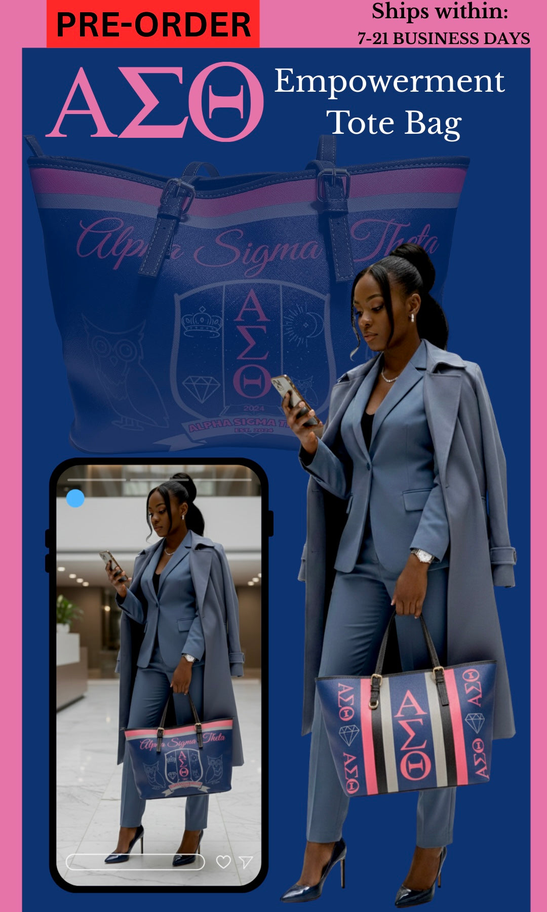 Crafted with meticulous attention to detail and utilizing high-quality materials, the PU fashion handbag is a versatile accessory that enhances your style and functionality. Its durability, luxurious texture, and practical organization make it an ideal companion for any occasion. Elevate your sorority gear by making a statement and effortlessly find your essentials with our mock leather fashion tote bag.